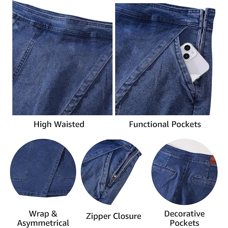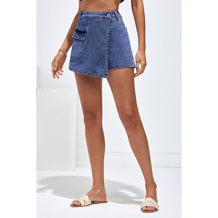 Denim Skorts for Woman Cargo Faux Wrap Jean Skort Skirts Stretchy High Waisted Skirt Shorts Country Concert Wear