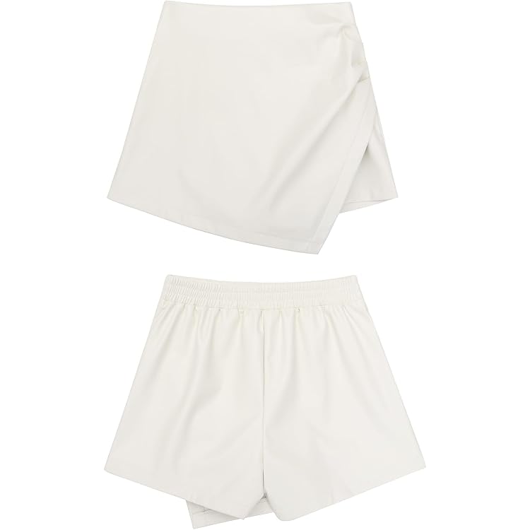 Shorts for Women Faux Leather Skorts High Waisted PU Leather Shorts Elastic Waist Ruched Wrap Skorts Skirts
