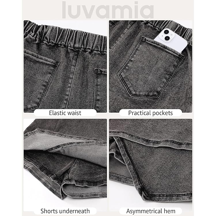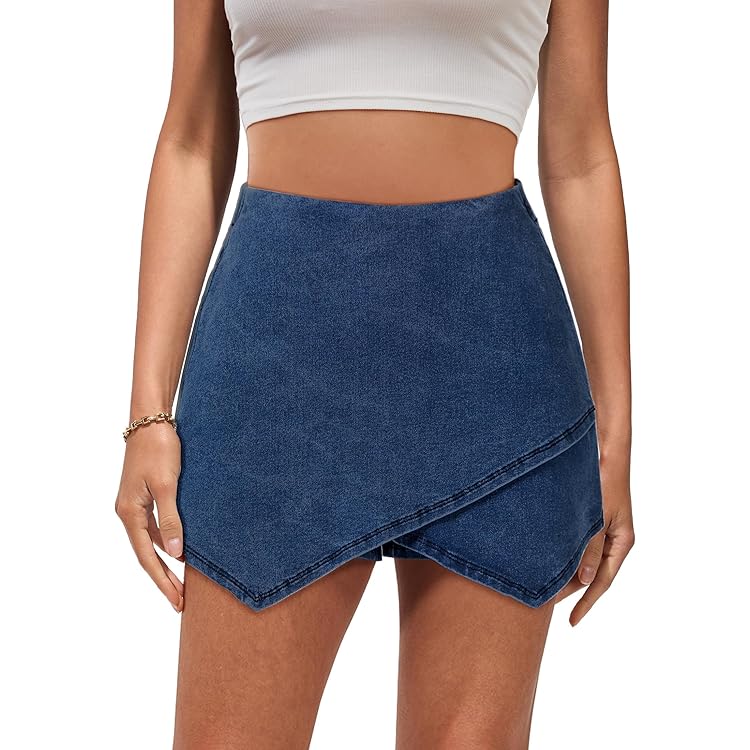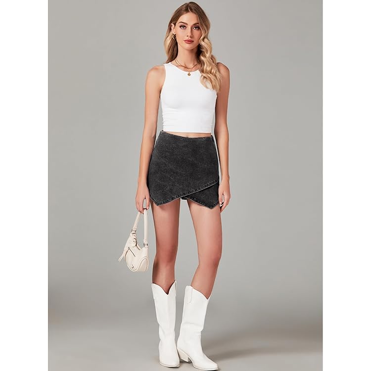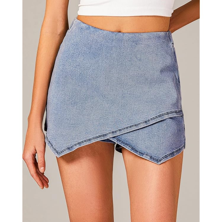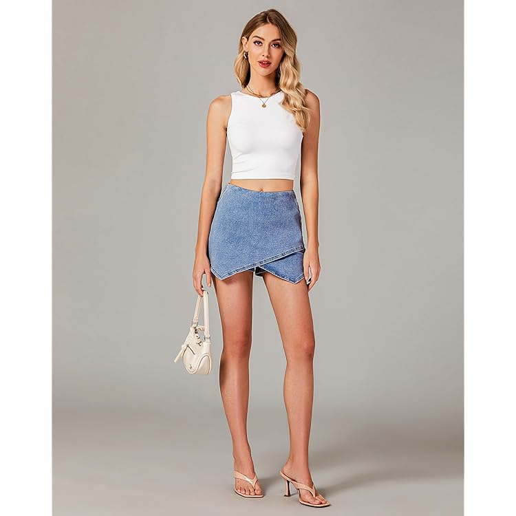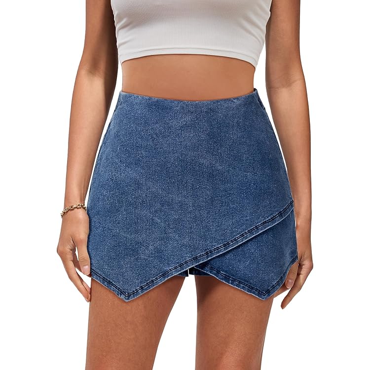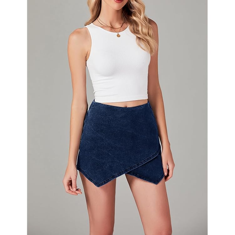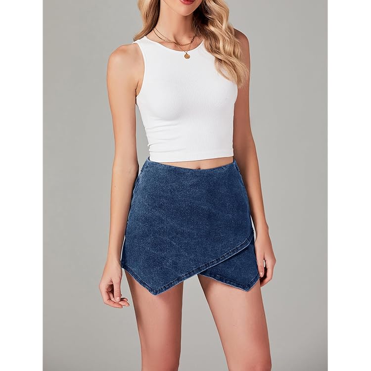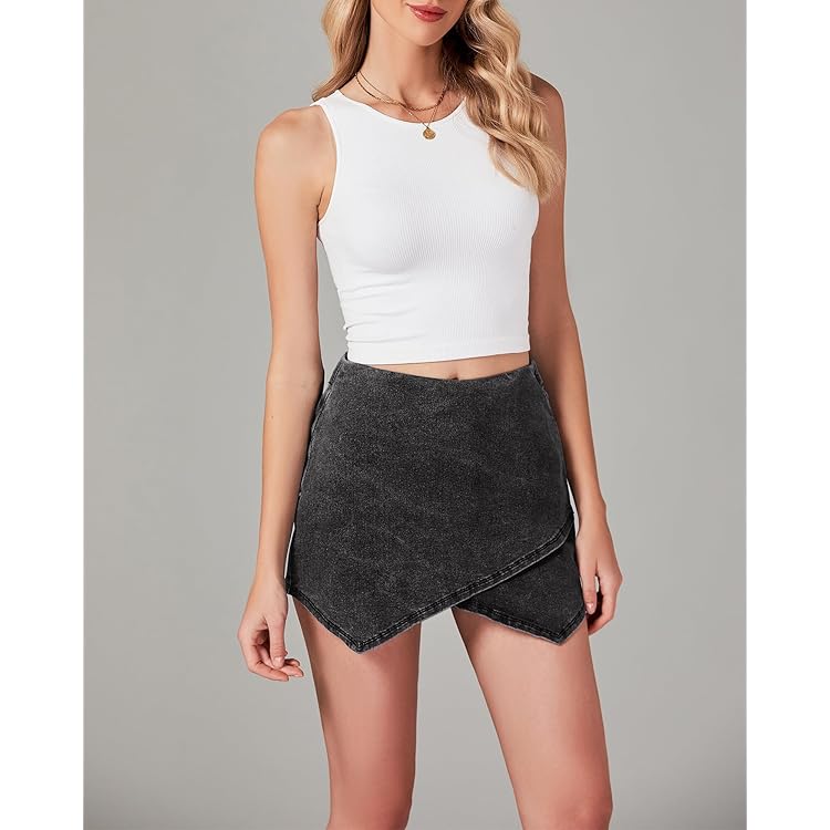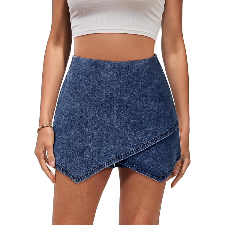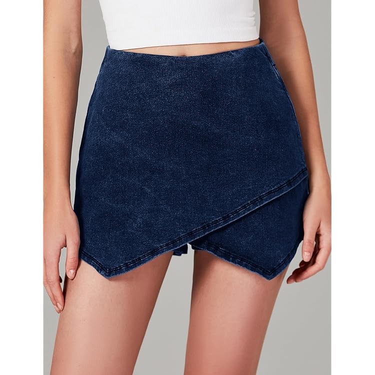 Skorts Skirts for Women Denim Mini Skirt Side Slit with High Waisted Jean Shorts Stretchy
