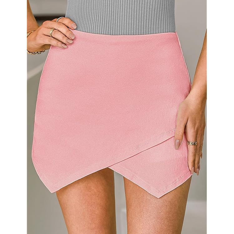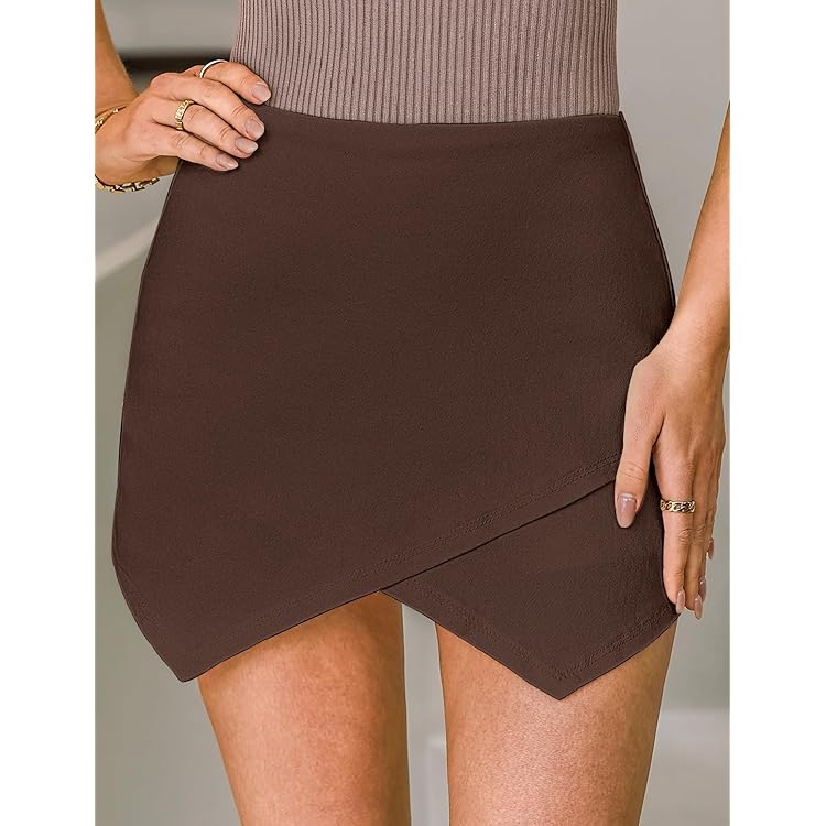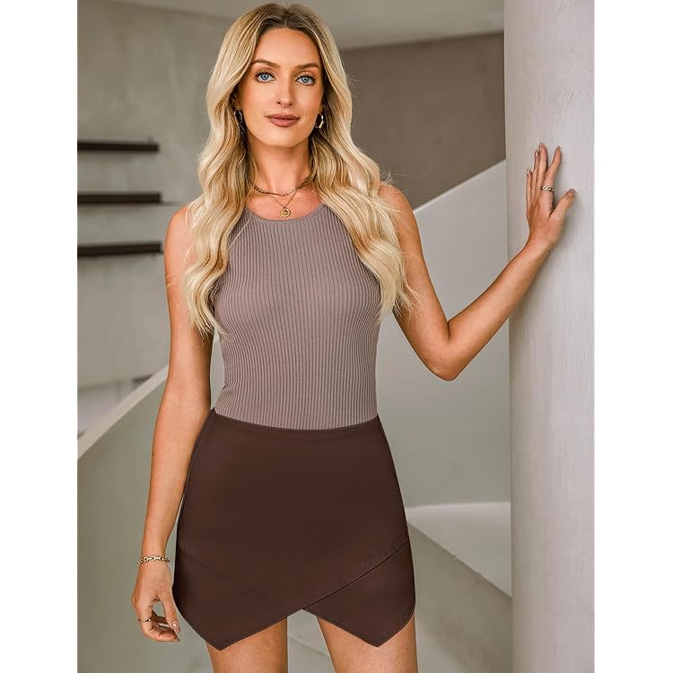 Shorts for Women Faux Leather Skorts High Waisted PU Leather Shorts Elastic Waist Ruched Wrap Skorts Skirts