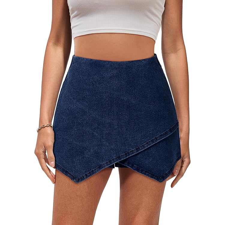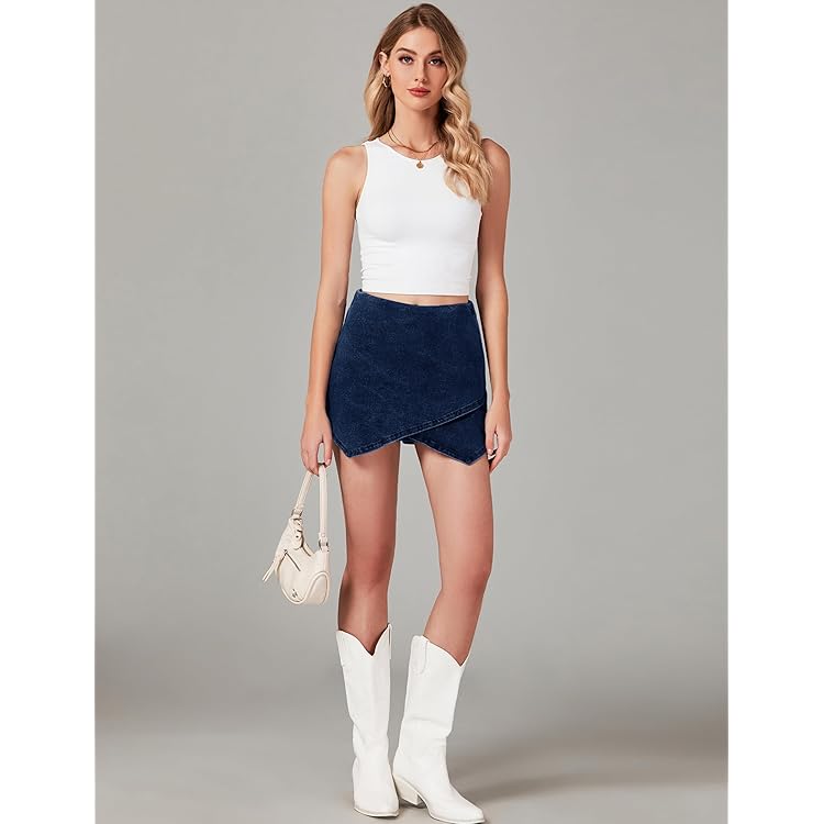 Denim Skorts for Woman Cargo Faux Wrap Jean Skort Skirts Stretchy High Waisted Skirt Shorts Country Concert Wear