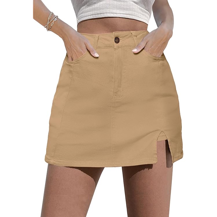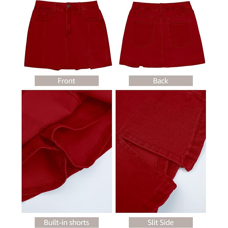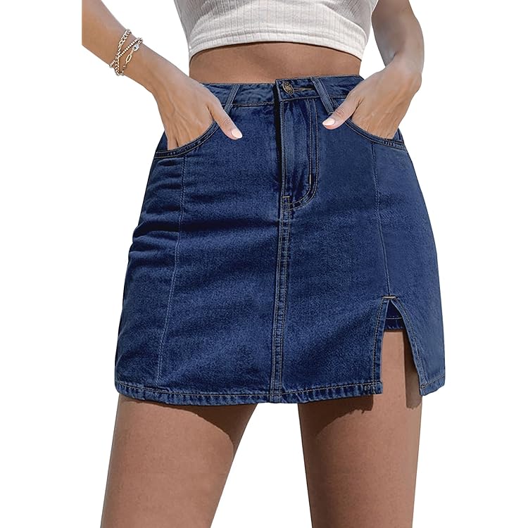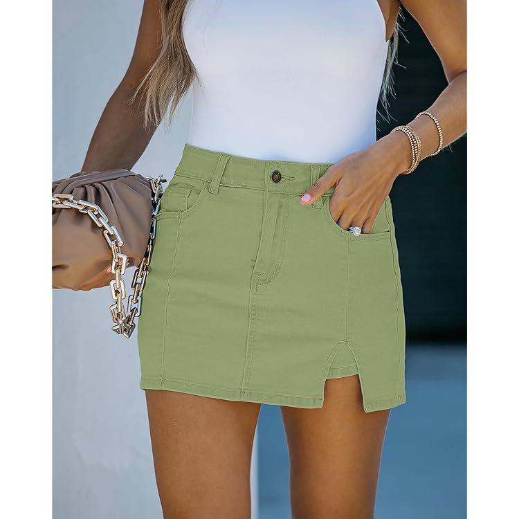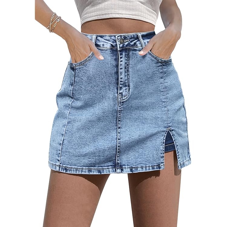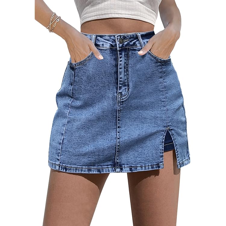 Skorts Skirts for Women Denim Mini Skirt Side Slit with High Waisted Jean Shorts Stretchy