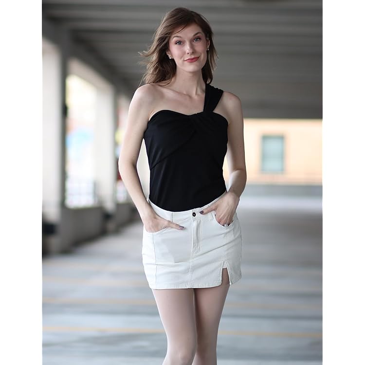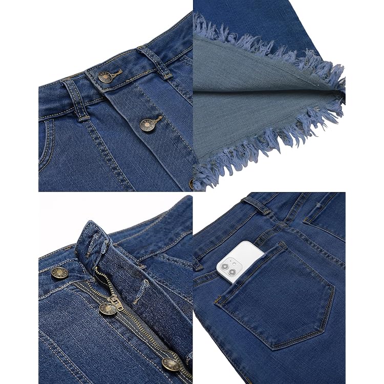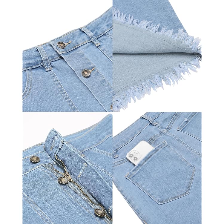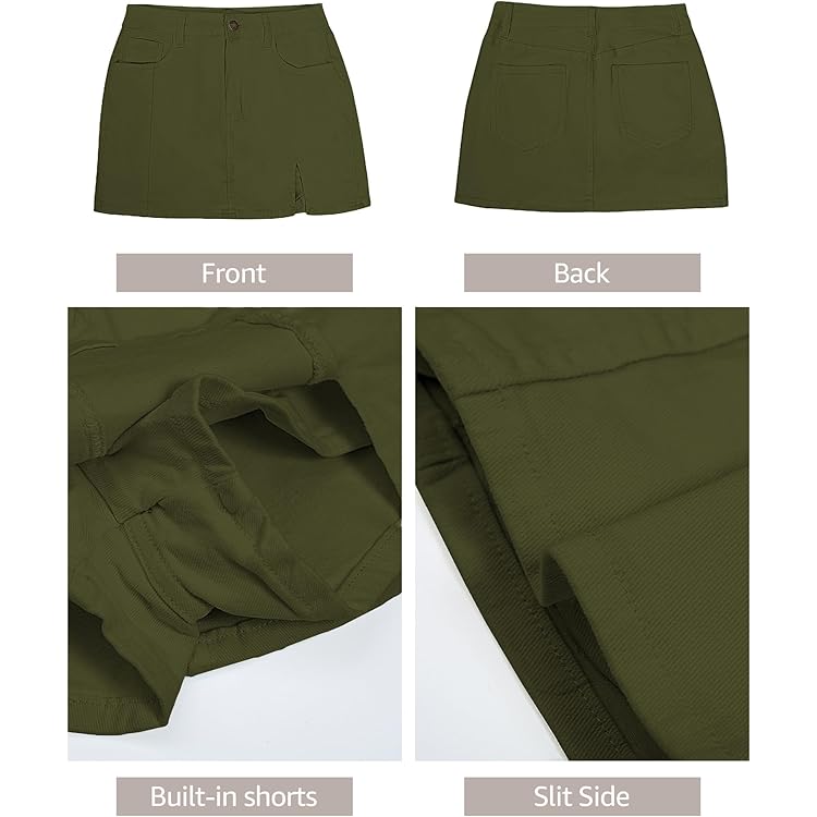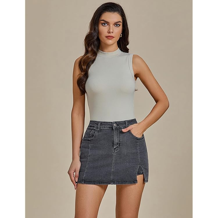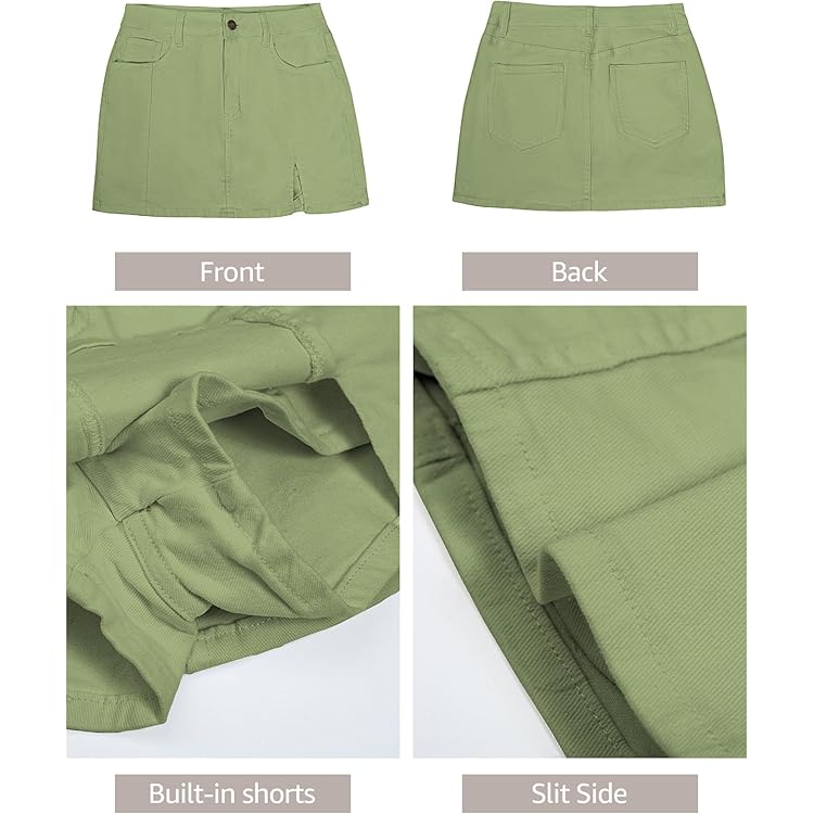 Skorts Skirts for Women Denim Mini Skirt Side Slit with High Waisted Jean Shorts Stretchy