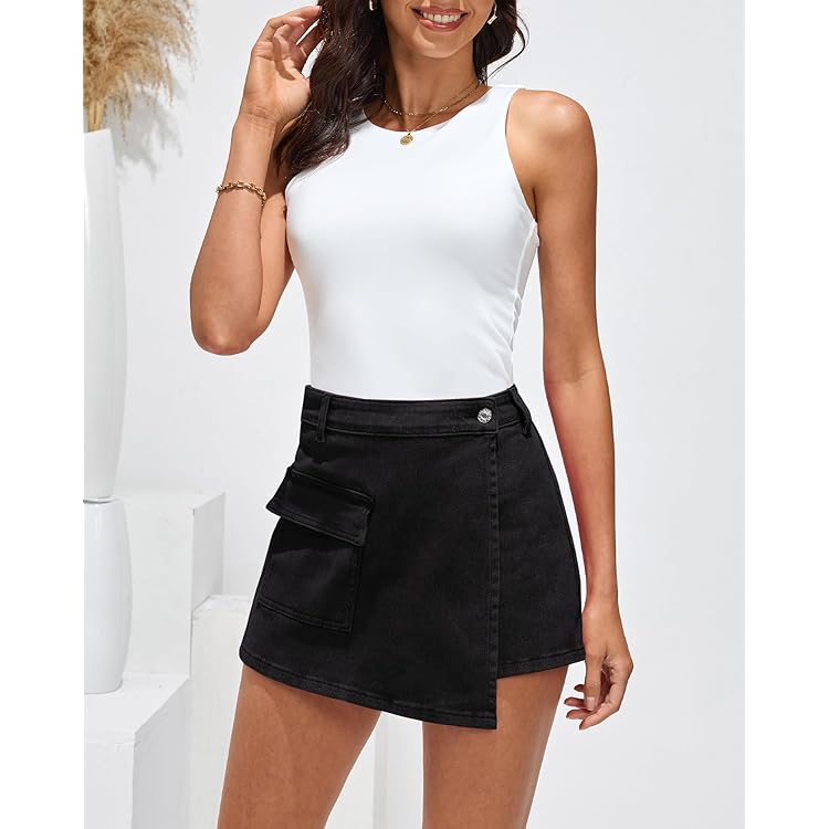 Denim Skorts for Woman Cargo Faux Wrap Jean Skort Skirts Stretchy High Waisted Skirt Shorts Country Concert Wear